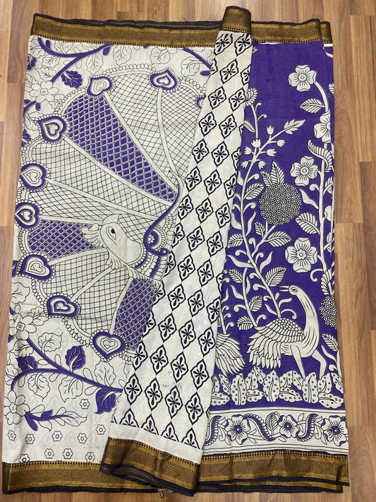 Kalamkari Aubergine Silk Saree